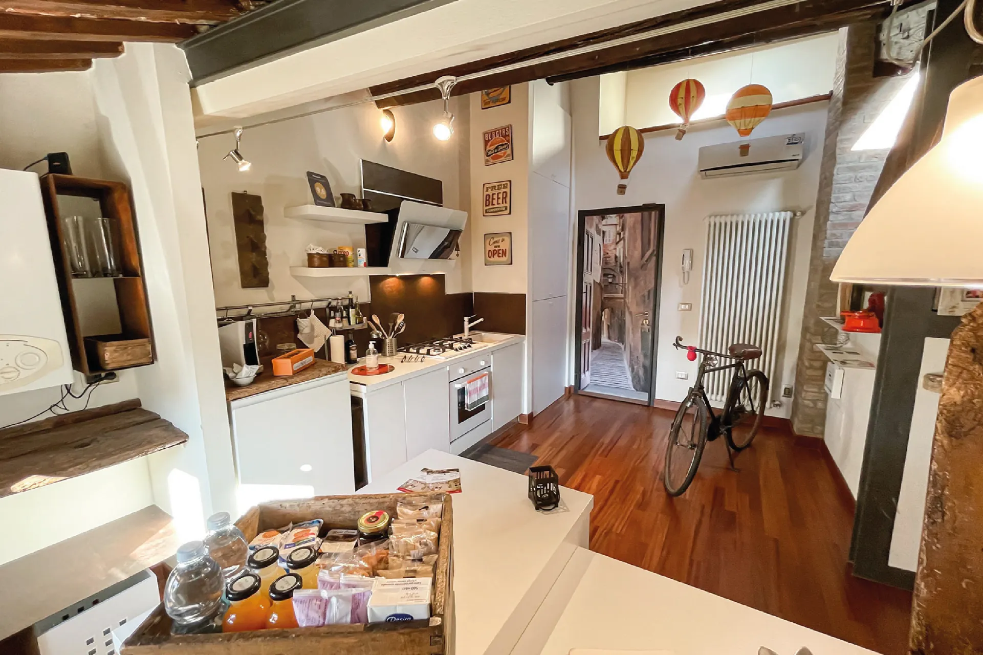 Situati in Via Carlo Mayr, uno degli assi principali del centro storico, i loft di Biciclò Ferrara sono appartamenti indipendenti perfetti per chi cerca un soggiorno pratico e raffinato. Monolocali e bilocali tra i 35 e i 50 mq, ristrutturati nel rispetto dell’architettura ferrarese e arredati con mobili artigianali italiani, coniugano tradizione e comfort moderno.